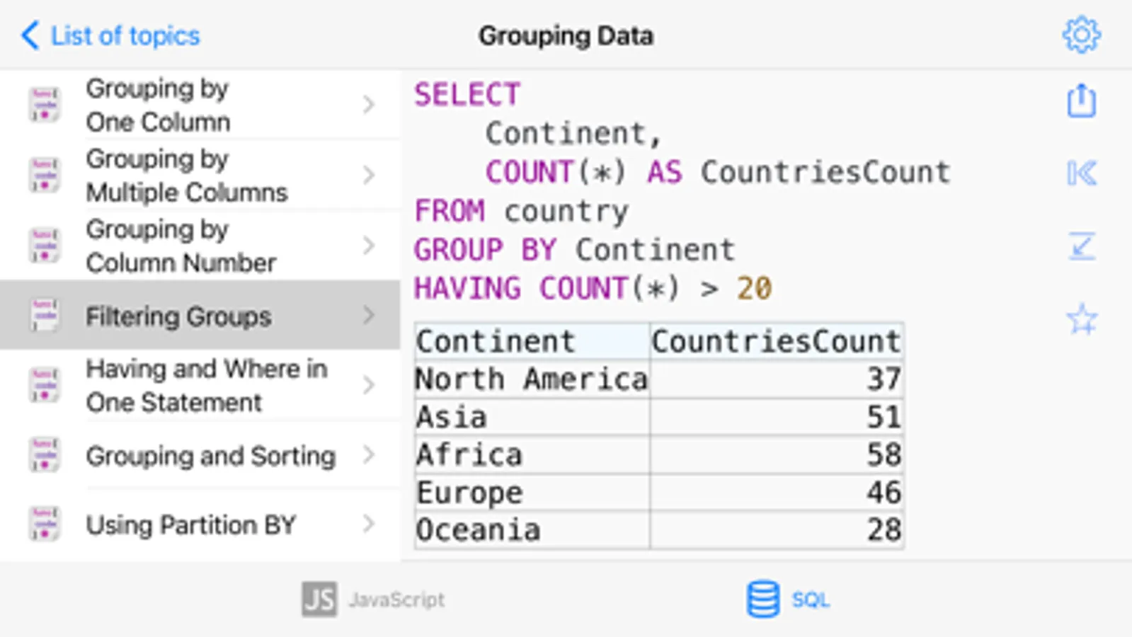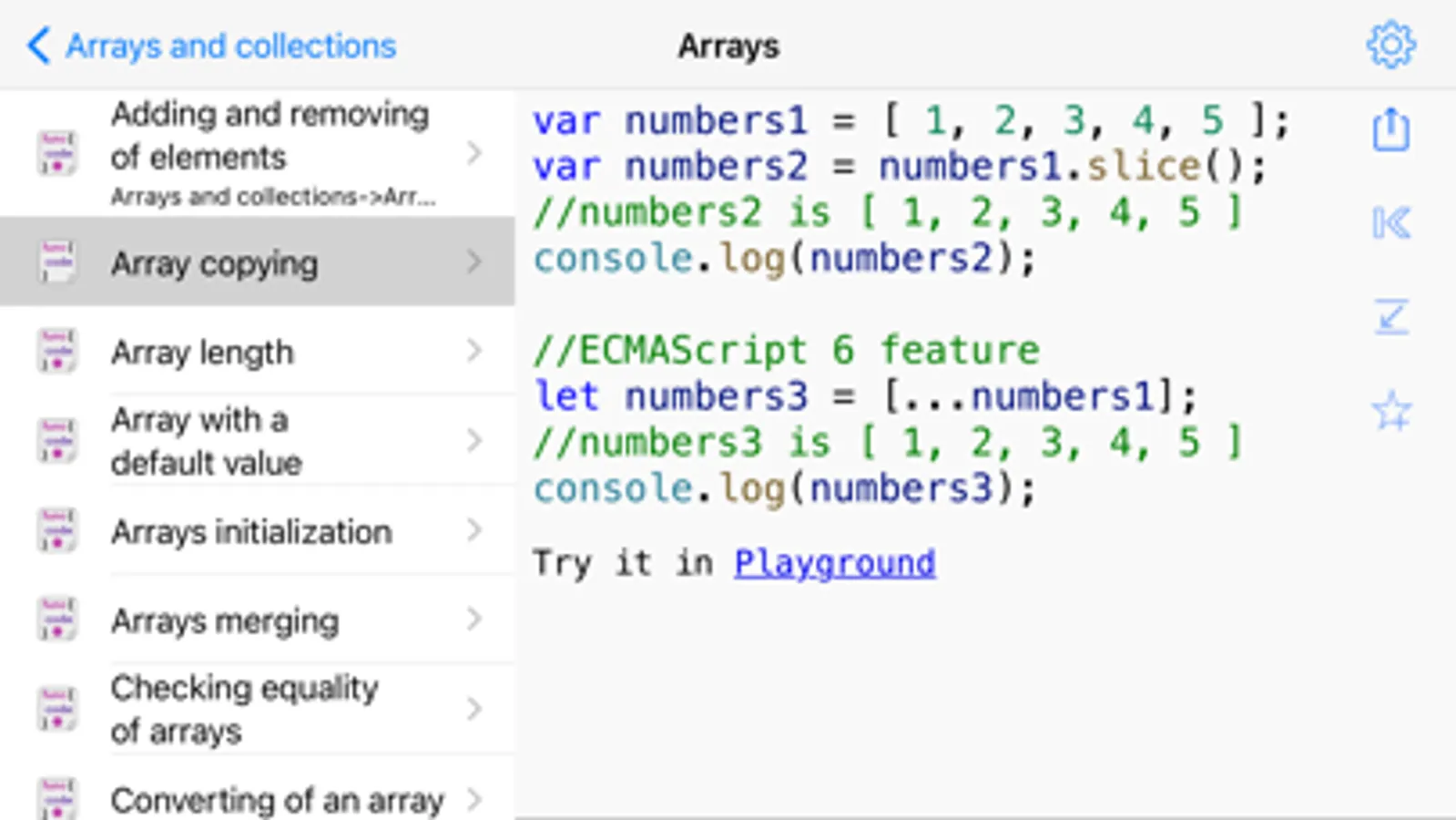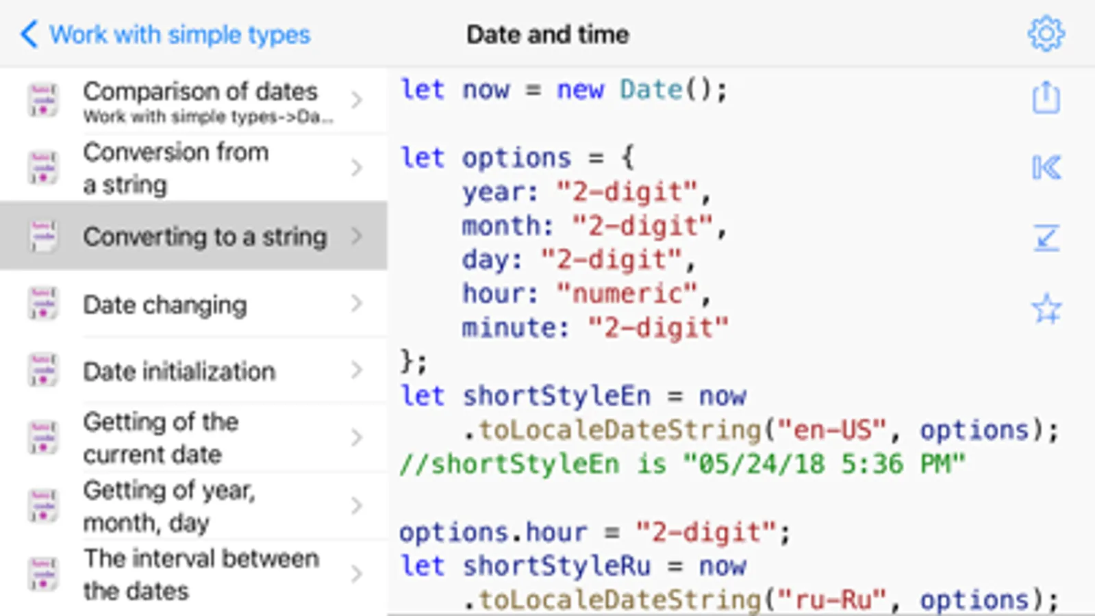 • The application is a good tool during the exam or the preparation to the interview because it contains a reference to frequently used operations in different programming languages.