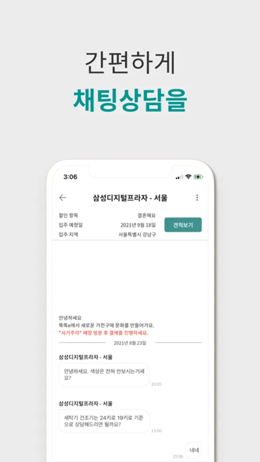 파트너들과 채팅을 통해 자세한 가전상담을 나눠보세요.