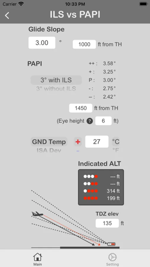 "PAPI" - calculates the altitude at which each PAPI indication can be obtained at the desired point.