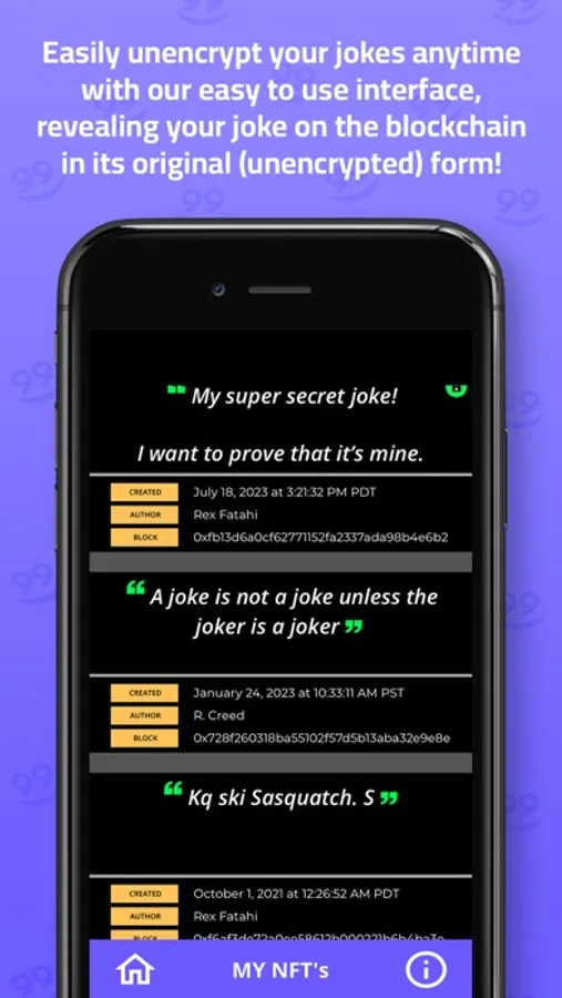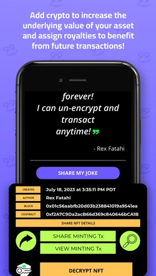 Mint hilarious jokes as NFTs, encrypt them for added security, and prove ownership with ease.
