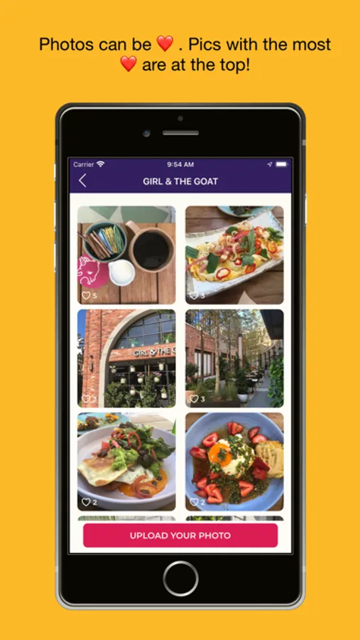 - Photos can be submitted for each restaurant. Users can images, with the popular ones at the top. Over time, the best images will be at the top.