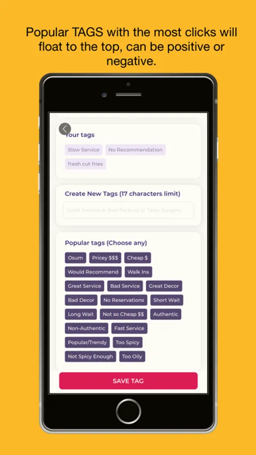 - Read Restaurant pages with Tags Reviews from users. Popular tags at the top. Tastemaker tags are featured at the top