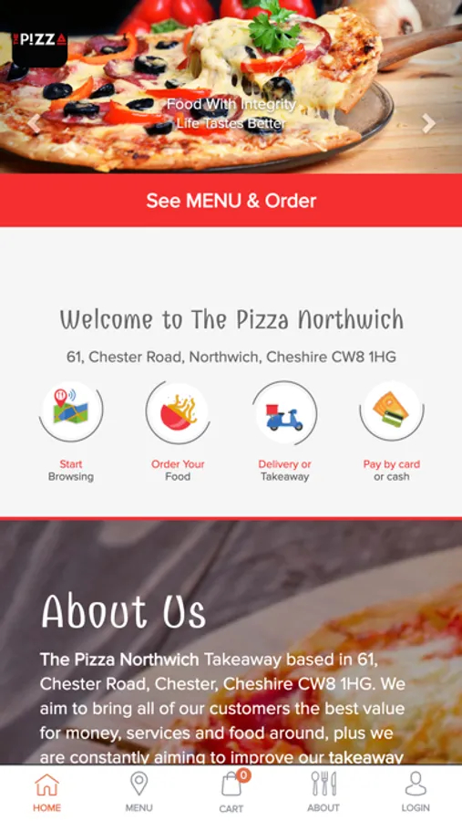 The Pizza Northwich Takeaway is based at 61, Chester Road, Cheshire CW8 1HG. We aim to bring all of our customers the best value for money, services and food around, plus we are constantly aiming to improve our takeaway service in Cheshire. You can now order food online. Try our online website which contains all our takeaway menus. We offer deliveries to all surrounding areas of Cheshire We offer all our customers fast food delivery. You can now order your favourite dish online and get fast home delivery. We are very particular about our service and quality to give our customers a better experience; which is why we are now proud to offer this fantastic online ordering website. You can even pay online and get your food delivered to your home in Cheshire.