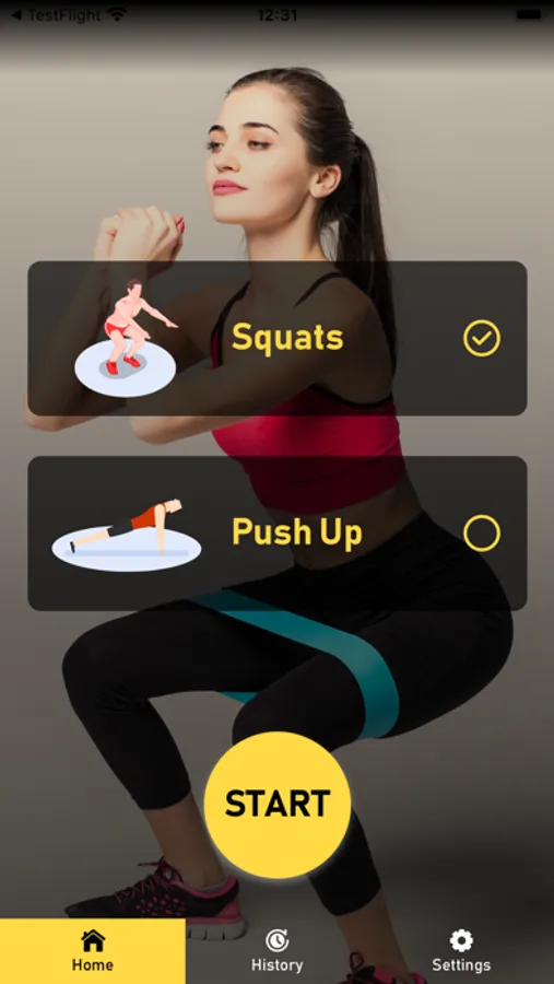 A squat and push-up coach will follow you through your workouts.