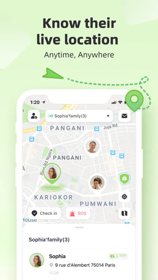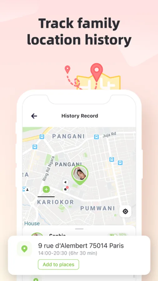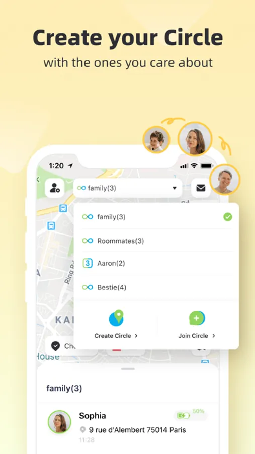 Create unlimited private circles with your loved ones and share location within your circles, let your family get peace of mind.