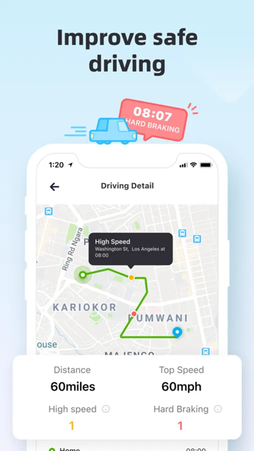 Recording instances of speeding and emergency braking during the driving process to help you develop good driving habits.