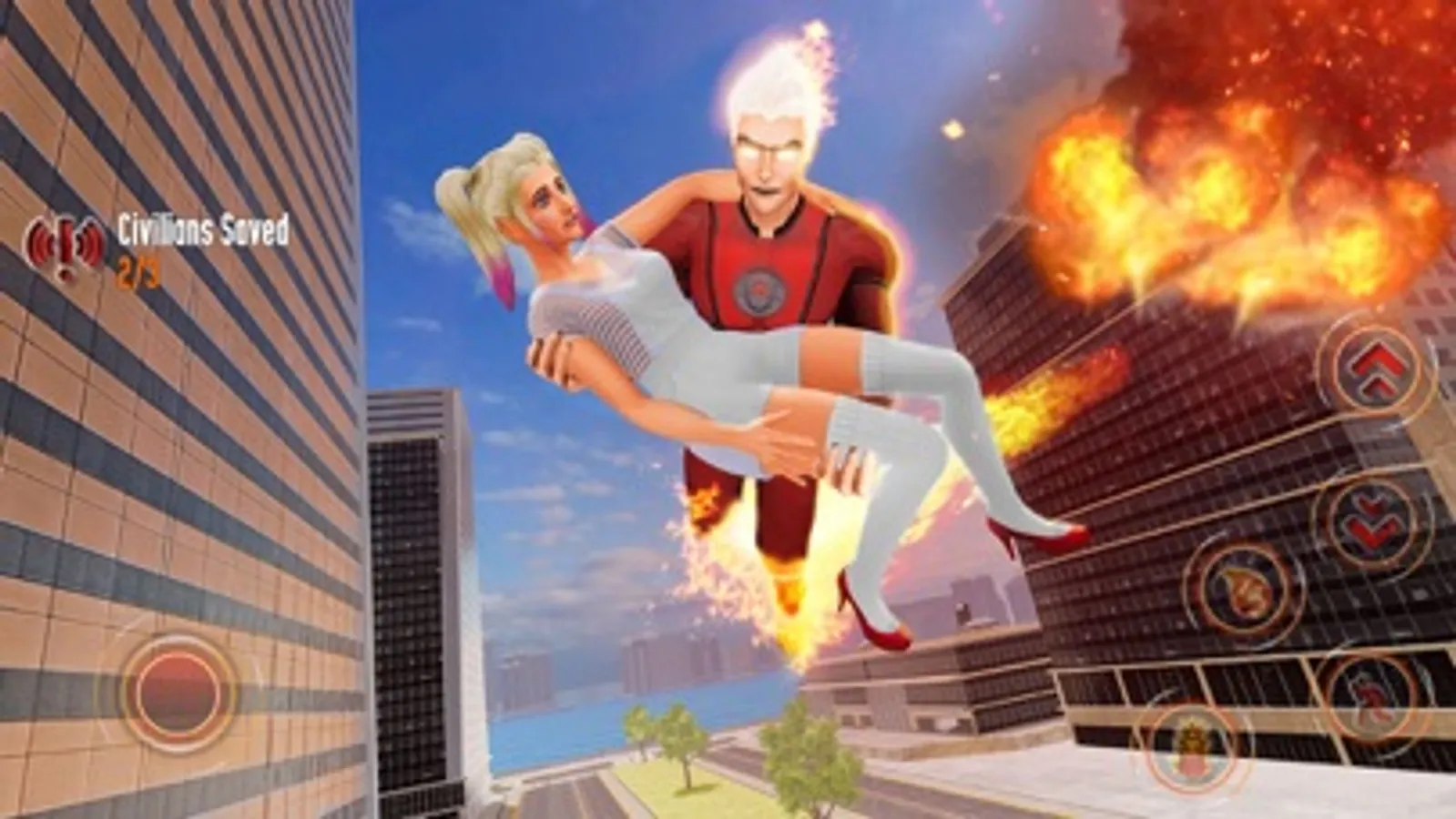 Be the fire superhero and save the city from huge destruction. Be the fast pace captain and rescue the people that are stuck in the flaming buildings. Go and rescue the girl that need your help and kill the other robot heroes that are trying to smash the city and rule over there. Multiple fighting scene along with superheroes rescue mission. Be the fire super hero and attack on the enemies by using your fire abilities to win that futuristic fight and save the people that are hostage and need the flying hero help. Multiple tasks to do and save the people that are your real strength.