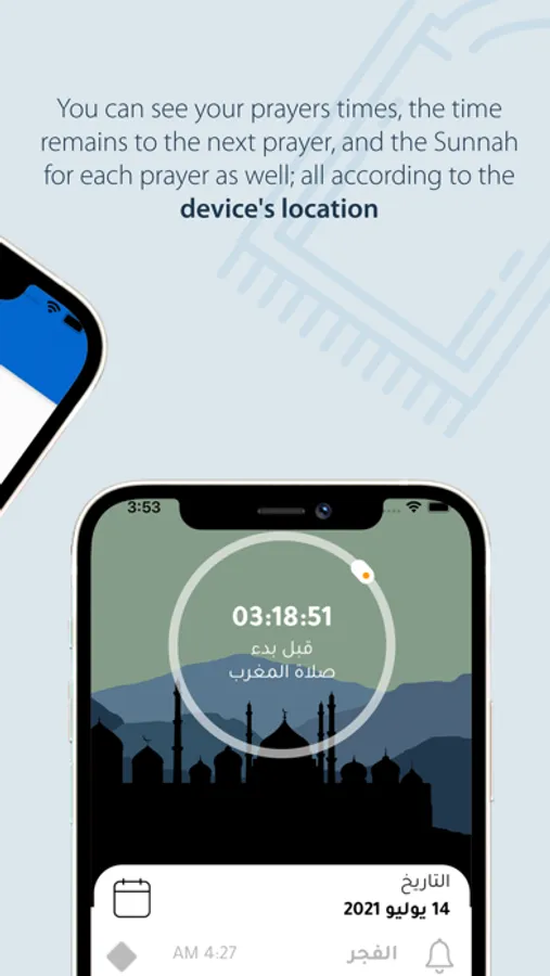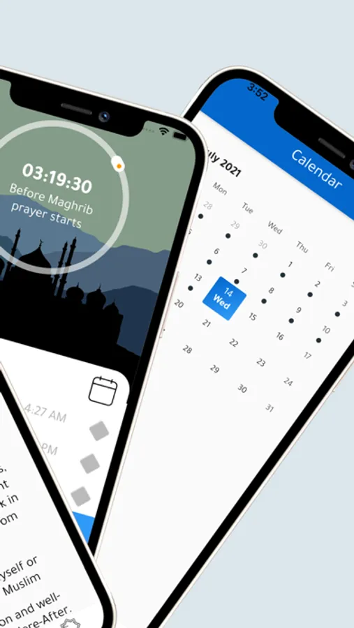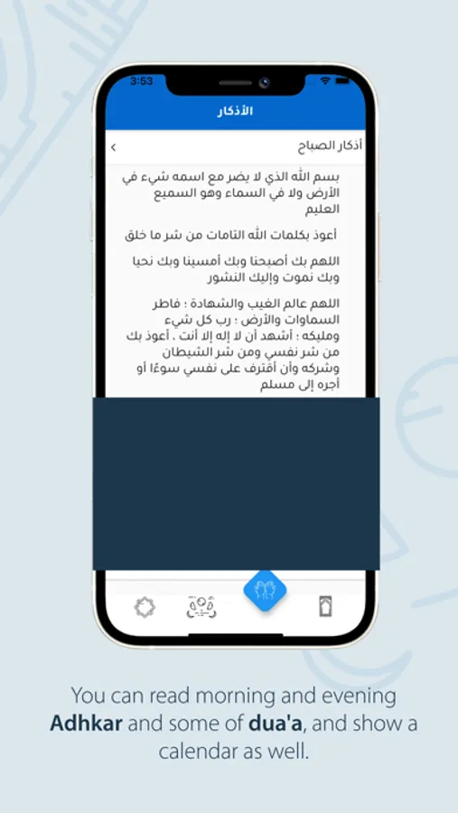 The prayer app contains morning and evening Adhkar, provided in both Arabic and English languages for all Muslims around the world and it also includes a Hijri calendar.