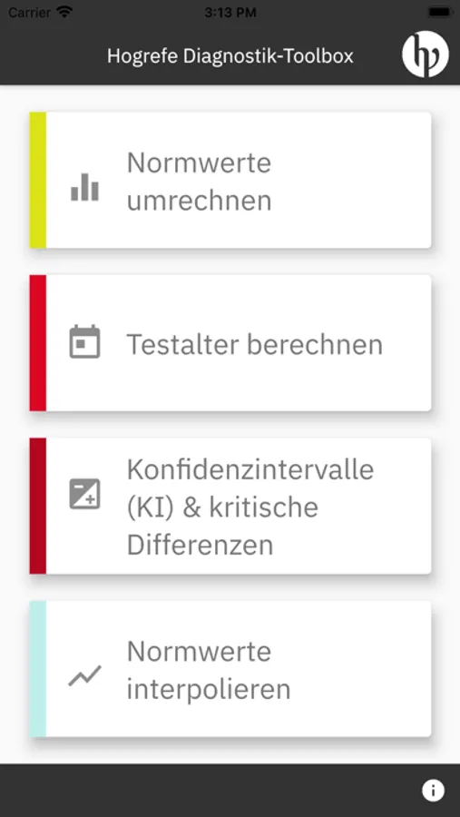 Die Hogrefe Diagnostik-Toolbox ist ein praktisches Alltagswerkzeug für alle, die sich mit psychologischen Testverfahren befassen. Die App unterstützt Sie bei Ihrer täglichen diagnostischen Arbeit und übernimmt Berechnungen, die oft zeitraubend sind, sodass Sie sich auf die wichtigen Dinge konzentrieren können.