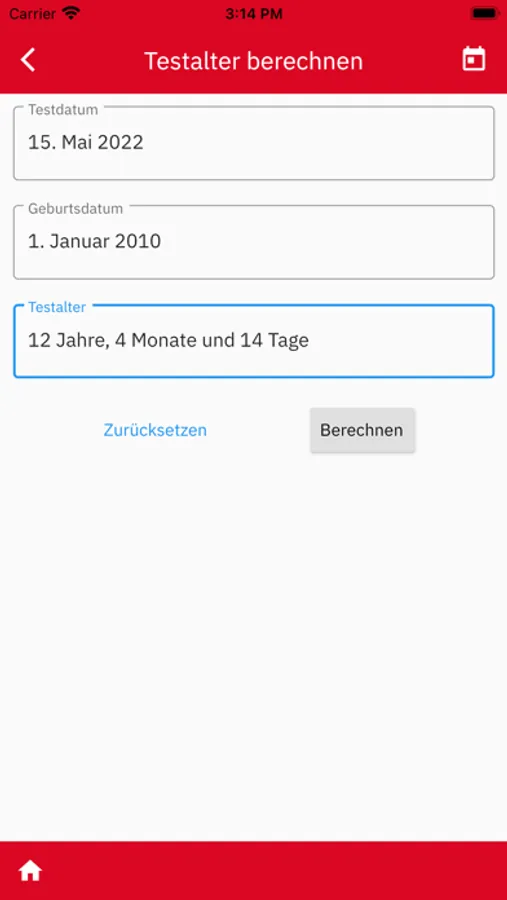 • Einfache und fehlerfreie Berechnung des Alters einer Probandin oder eines Probanden zum Zeitpunkt der Testung auf Grundlage des eingegebenen Geburtsdatums und Testdatums.