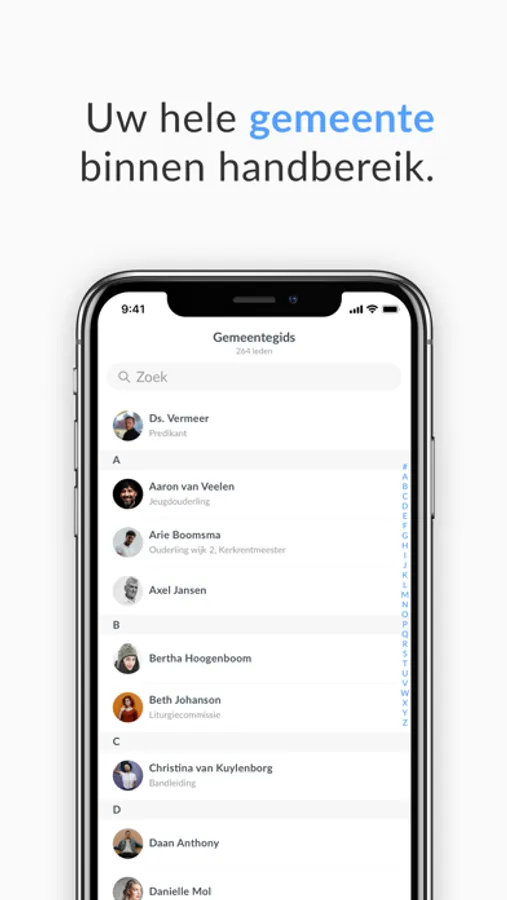 Does anyone still look up a telephone number in the telephone book? Hardly anyone! Thanks to the community guide feature, everyone within your congregation can be found. Send messages quickly, navigate to an address, or see what someone's role is in the Church? It becomes easy with the digital community guide.