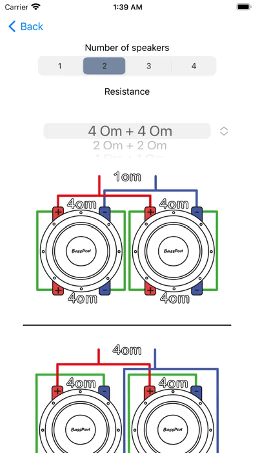 - See the speaker wiring diagram (parallel and serial connection)