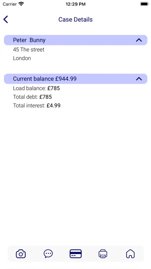 The app is connected directly to your organisations back-office system (DebtView) for real-time updates.