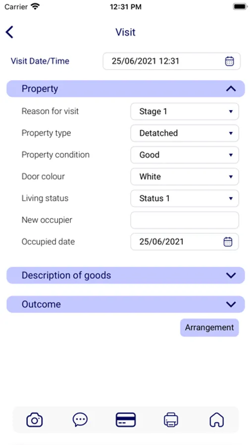 Record details of the visit using custom data fields and selection lists