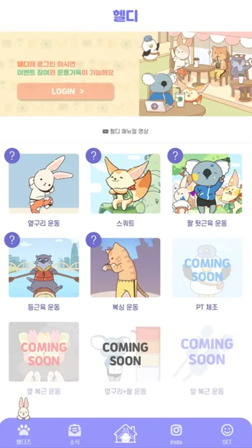옆구리 운동, 스쿼트, 복싱, 등, 팔운동 등 다양한 운동 동작을 적용했습니다.