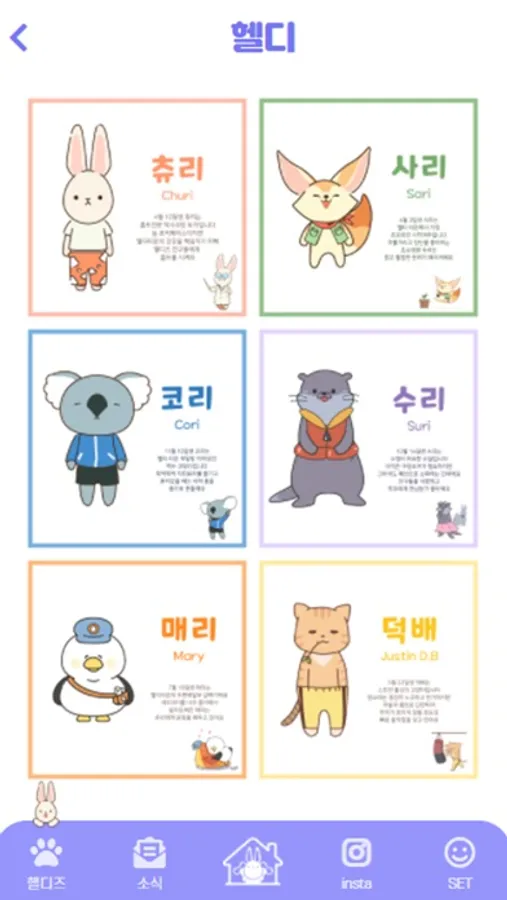 헬디즈 친구들인 츄리, 사리, 코리, 수리, 매리, 덕배와 함께