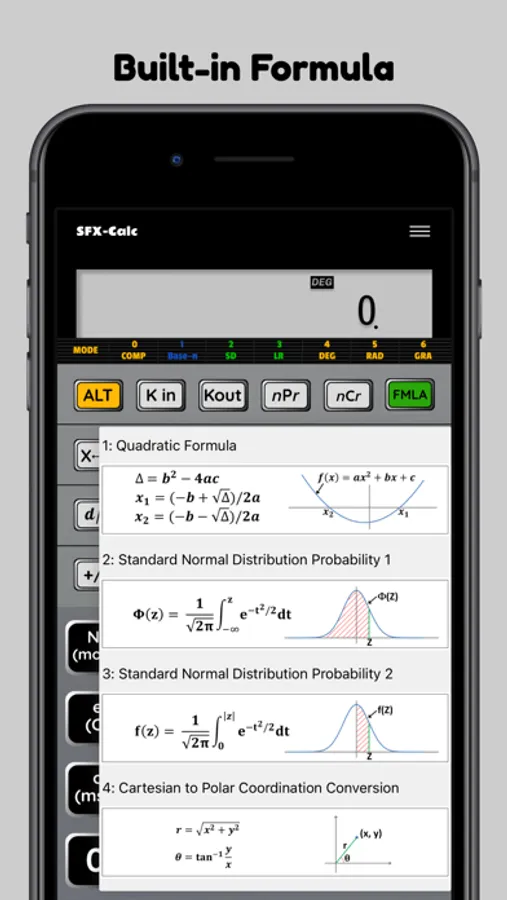 10. Formula calculation including Quadratic formula, Standard Normal Distribution Probability, etc.