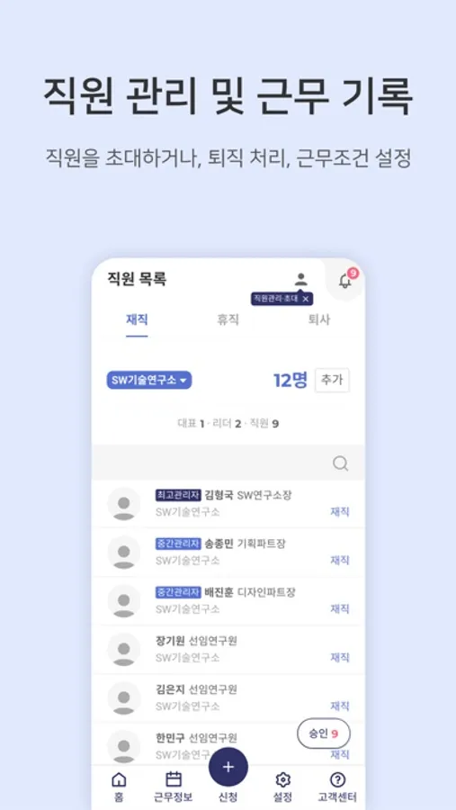근무 기록과 통계 기반 보고서 확인 → 근태관리에 시간/비용 절감