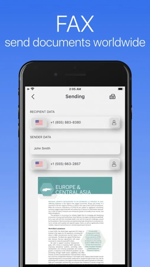 - Fax any documents and photos to over 100 countries worldwide