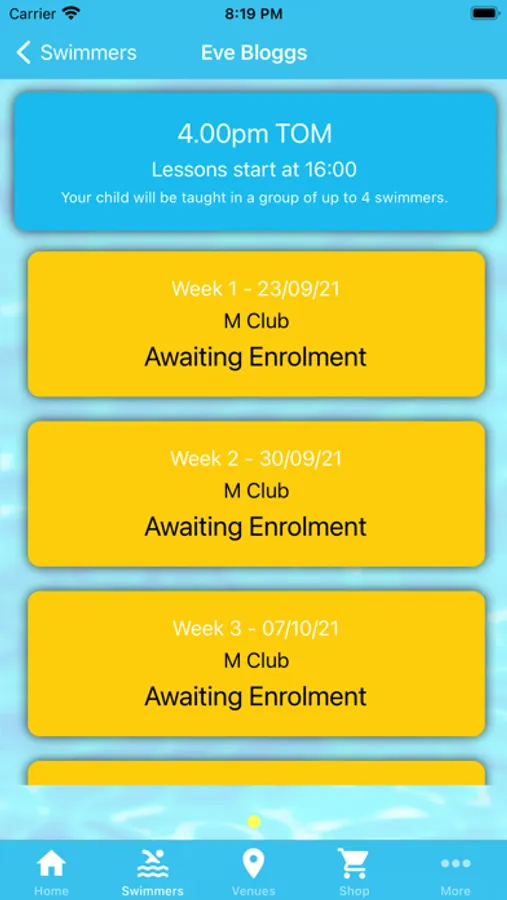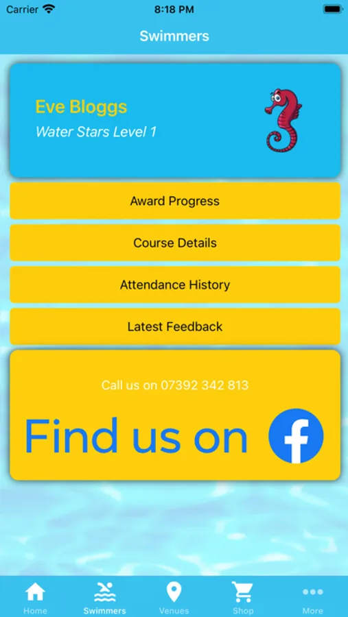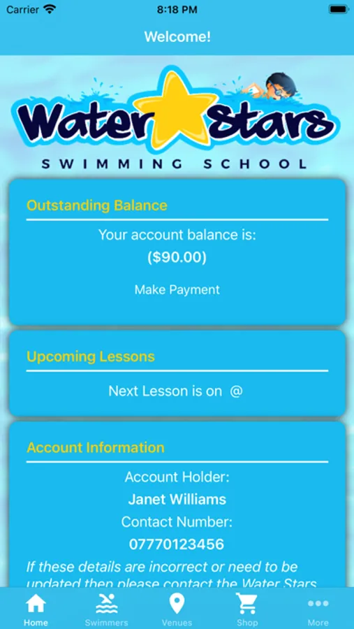 Swimmer Progress and Account management app for Water Stars Swimming School members.