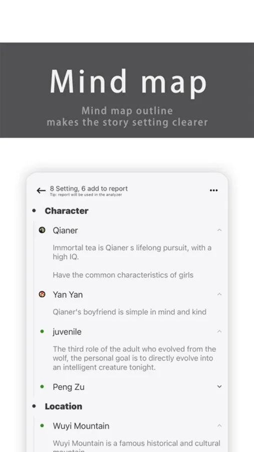 A professional novel writing software. Including timeline, brain map, intelligent analyzer, you can even know the number of appearances of your character.