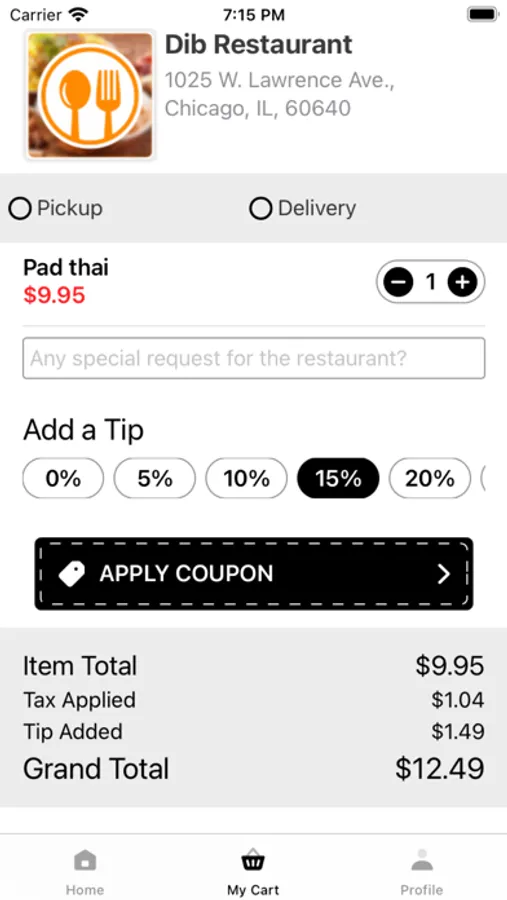 2. Dib restaurant is going digital now and has it's own online ordering app. If you want to order delicious food from us, just download our app and place order in 3 quick steps. Build your order just the way you like it or choose one of our combo from the menu. Add items from the rest of our robust menu. And with the order Tracker ® you can follow your order from the moment you place it until it’s out for delivery, carryout or pickup.