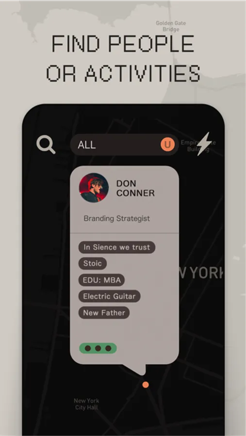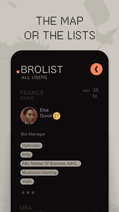 You can search people and their bases on the map and also on the lists. With BROMAP the connectivity and similarity of people are now visible on a map. This knowledge that you are not the only human on this planet who wants to do some specific activity, gives you the power to move towards your goals and interests with people just like you around the world.