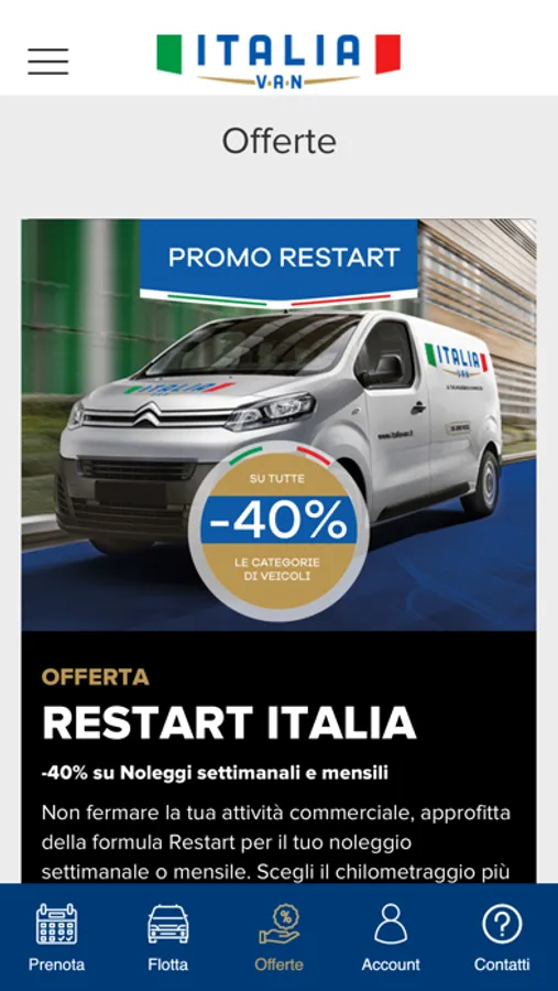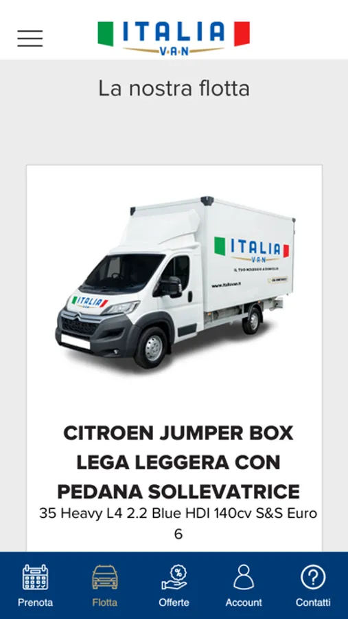 Noleggia con l’APP ItaliaVan il veicolo commerciale adatto per la tua attività. E tienila sempre a portata di mano. Consegne? Trasporti? Traslochi? La nostra flotta è il partner ideale per tutte le necessità di trasporto di piccolo, medio e grande carico.