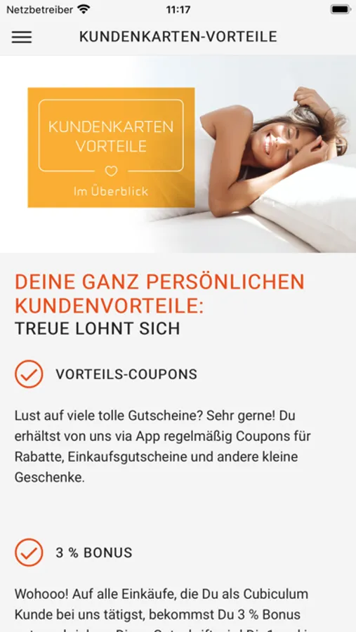 Mit der cubiculum App hast Du alle Vorteile als cubiculum Kunde und deine digitale Kundenkarte immer auf dem Smartphone dabei.