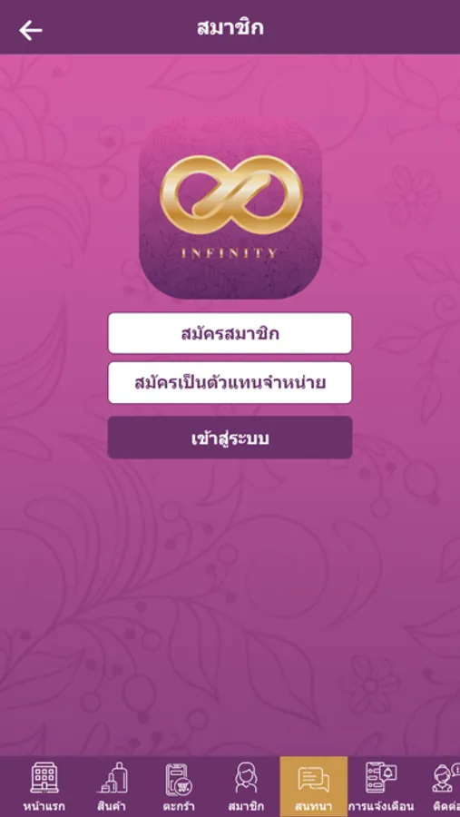 Infinity อินฟินิตี้ แอพจำหน่ายอาหารเสริมและผลิตภัณฑ์เสริมความงาม