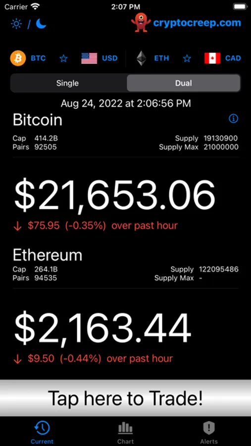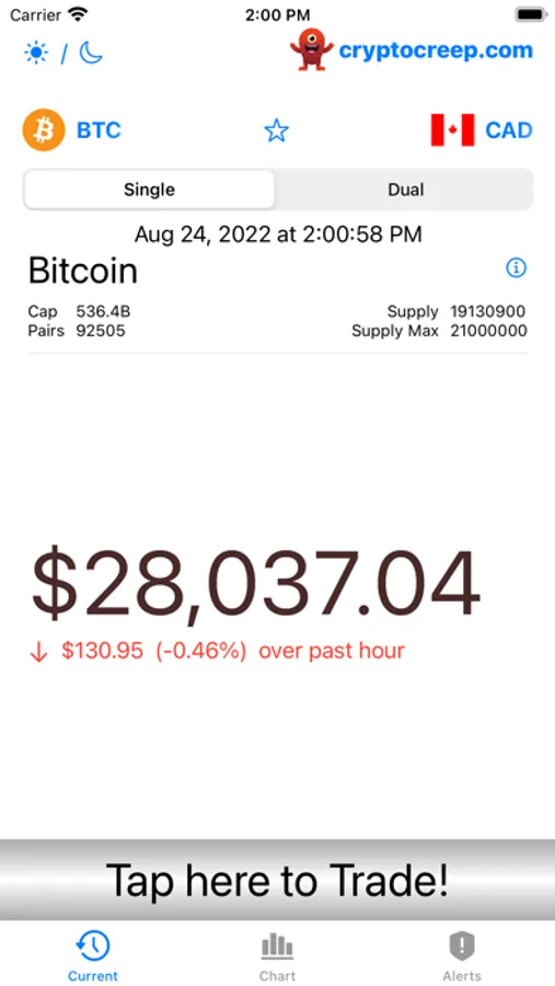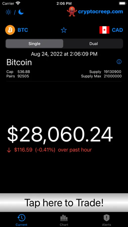 Crypto Creep, elegant in its simplicity, lets you track the price of your favourite cryptocurrency in any global fiat currency in real time.