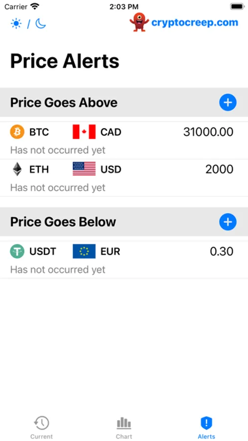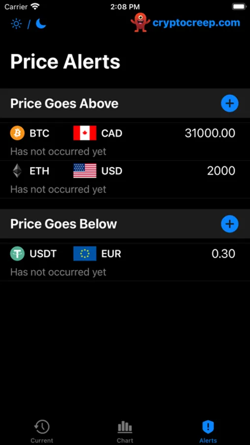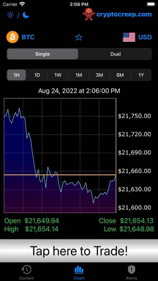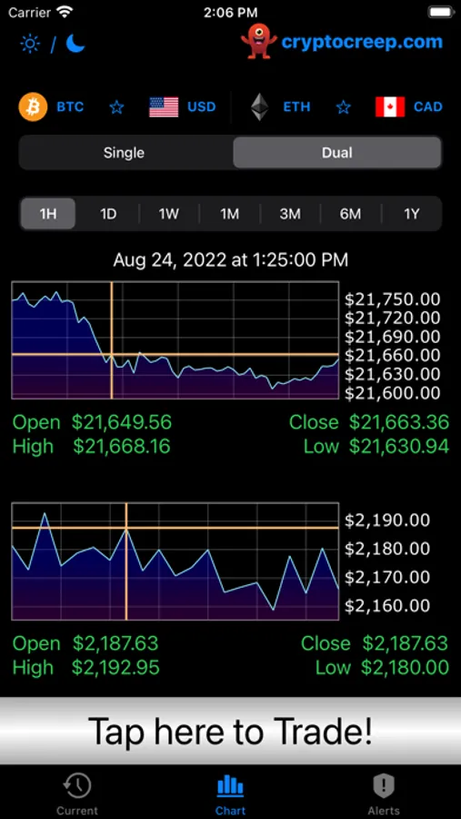 See pricing and historical charts in light or dark mode. And set Crypto Creep as a complication* on your Apple Watch face. Anywhere, anytime, just glance at your watch to stay informed of the current market.