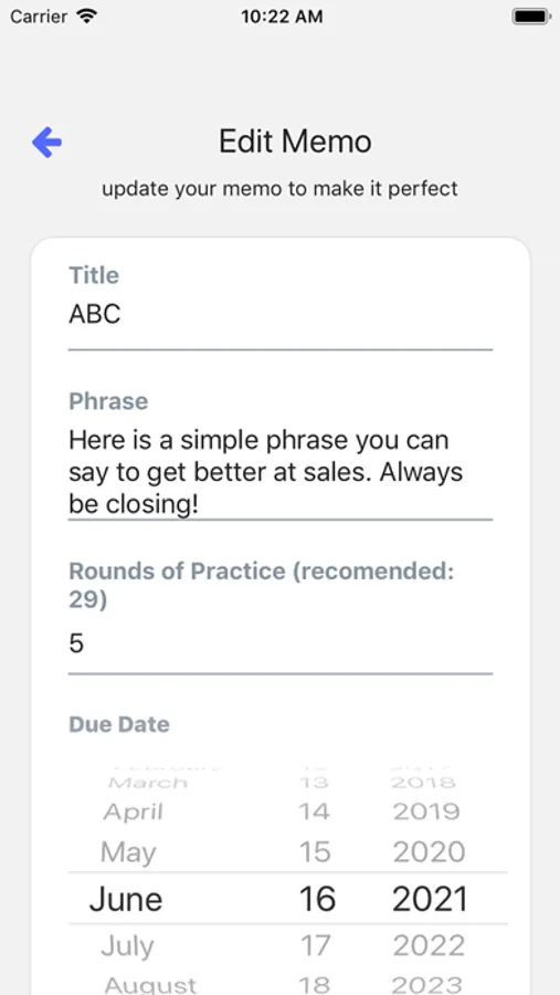 Verblurb is a slick mobile app that helps user memorize phrases. You can create new phrases, track your progress, and practice phrases with voice memorization.