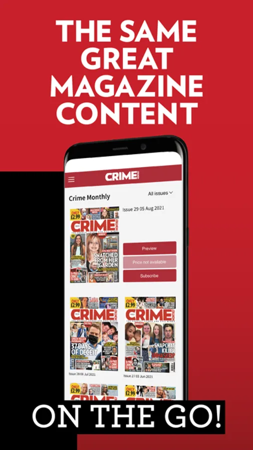 Crime Monthly is a magazine dedicated to all aspects of true crime. You can access your favourite crime read anywhere with the power of your smart phone or tablet.