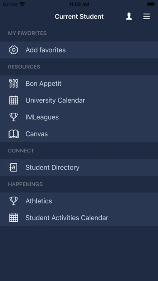 Dining: View on-campus dining hours, dining hall menus, and order in advance.