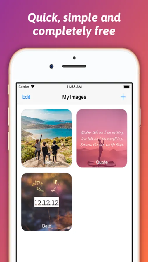 Simply add an image from your Photos library, add an optional text overlay, and it's ready to display in a widget.