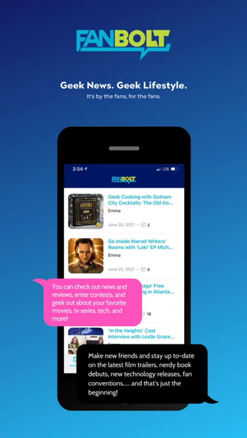FanBolt features exclusive interviews, blogs, and editorials (written by fans) which are featured in our newsfeed. Also geek out over Geek Girl TV - video content from our editor Emma Loggins, who covers everything from film reviews to conventions to geeky dishes to cook in the kitchen.