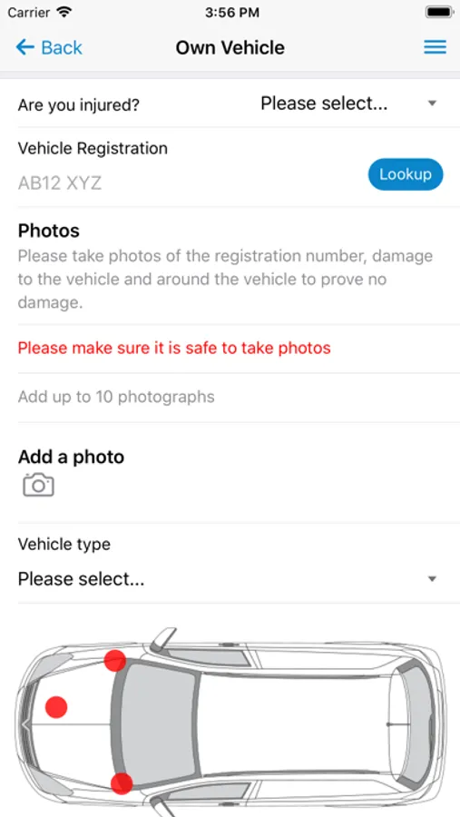 If an accident occurs, use the app to collect as much information as possible including GPS location data and images from the scene. The information gathered from the scene is crucial and more accurate than trying to remember it later on