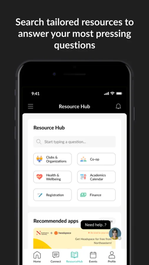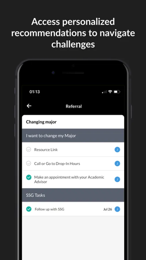 Check-In: Based on the students' top challenges, MentorHubNU recommends apps and actions that best answer that particular student's need.