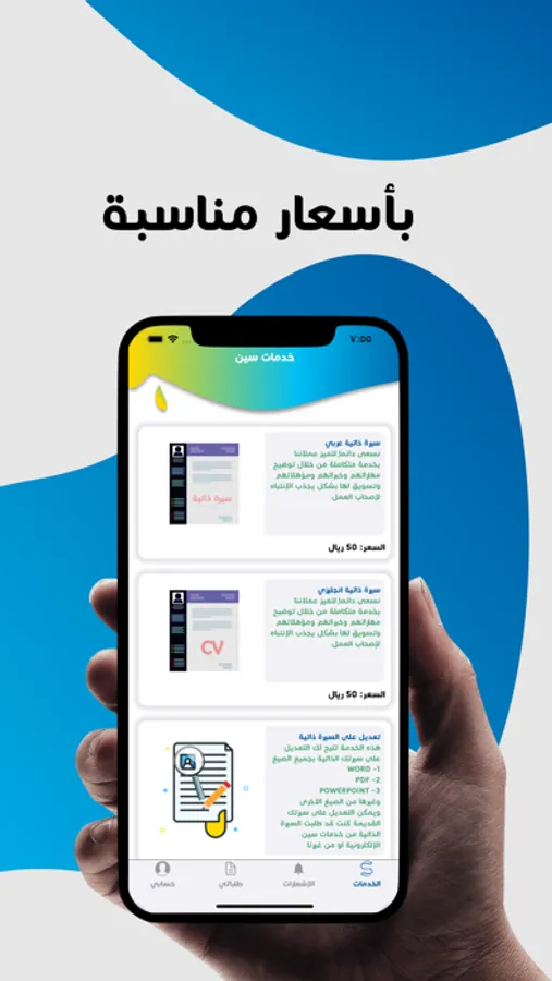 حرصاً منا على تقديم أفضل الخدمات قدمنا لكم تطبيق سين للخدمات الإلكترونية، اطلب الخدمة اللي تحتاجها وحنا نوفرها لك بسعر مميز.