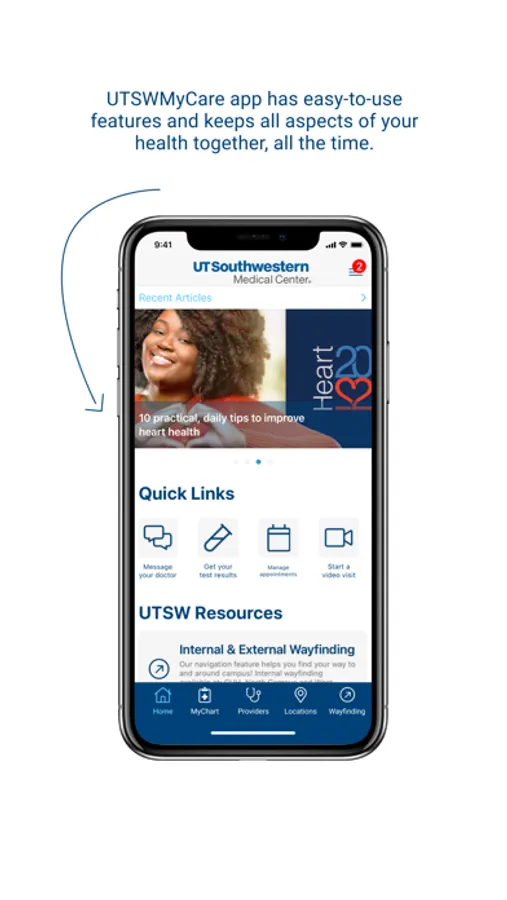 UTSWMyCare, our new streamlined, one-app solution delivers an exceptional experience that UT Southwestern is known for. UTSWMyCare helps patients easily manage their health and stay connected with their provider all with a sense of security throughout their health care journey. The UTSWMyCare app provides access to medical records, lab results, messaging, prescription refills, scheduling, video visits, and wayfinding. A few features are true differentiators from other health system apps. When completing a video visit, just log into the UTSWMyCare app and have everything from the check-in, visit with your provider, and follow-up scheduling all in one place. When a visit to our main campus is essential, UTSWMyCare has a navigation feature that will give turn by turn visual and audio directions from the parking garage to the front desk at your doctor’s office. For those who prefer a ride sharing service, our patients can access Uber and Lyft from within UTSWMyCare and request a ride to any of our locations. In short, UTSWMyCare will offer a simple and convenient digital experience for our patients.