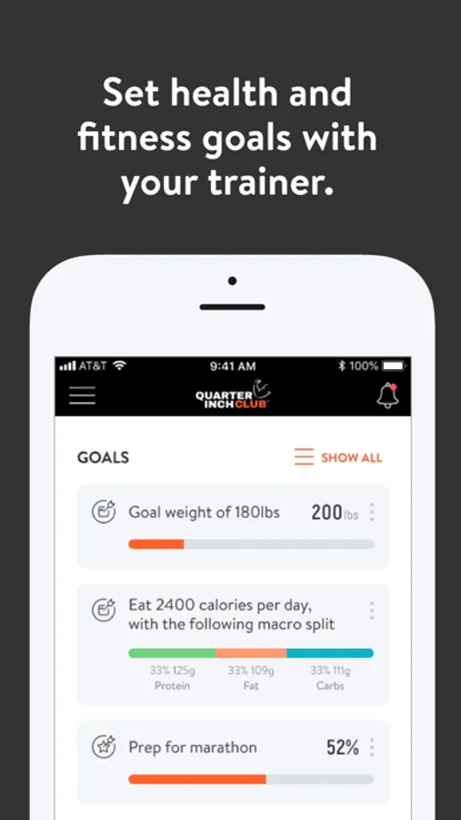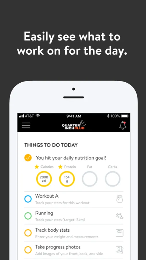With Quarter Inch Club App, you can start tracking your workouts and meals, measuring results, and achieving your fitness goals, all with the help of your coach.