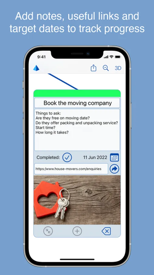 - Add target dates and mark individual tasks as complete to help track your progress.
