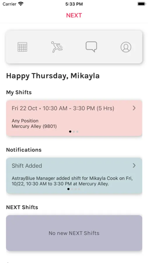 For managers: NEXT for Managers and Crew is your intelligent assistant making sure your team members are able to work all the scheduled shifts.