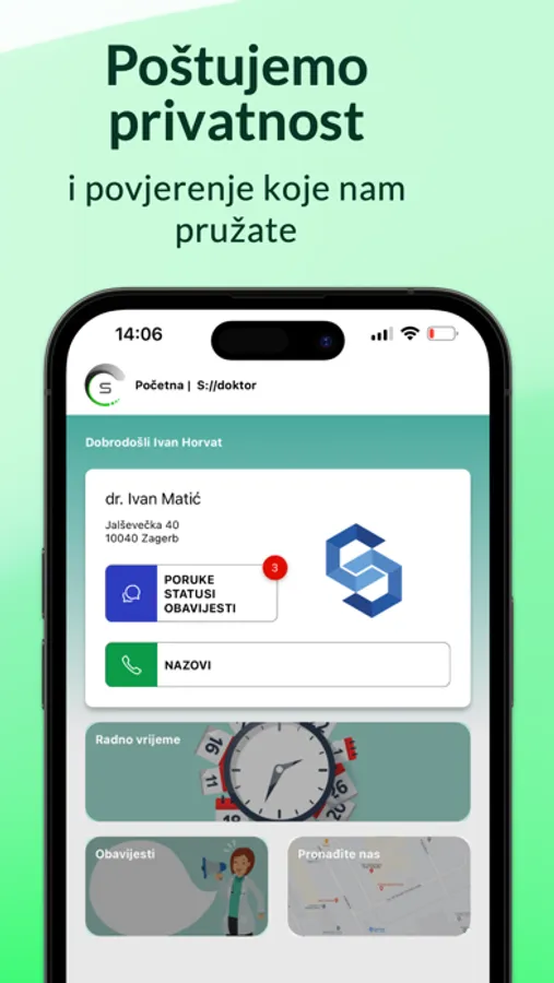 S://DOKTOR je mobilna aplikacija koja vam omogućuje integrirani pristup kvalitetnim medicinskim i zdravstvenim uslugama putem telefona na brz, jednostavan i siguran način slijedeći europske propise o zaštiti podataka.