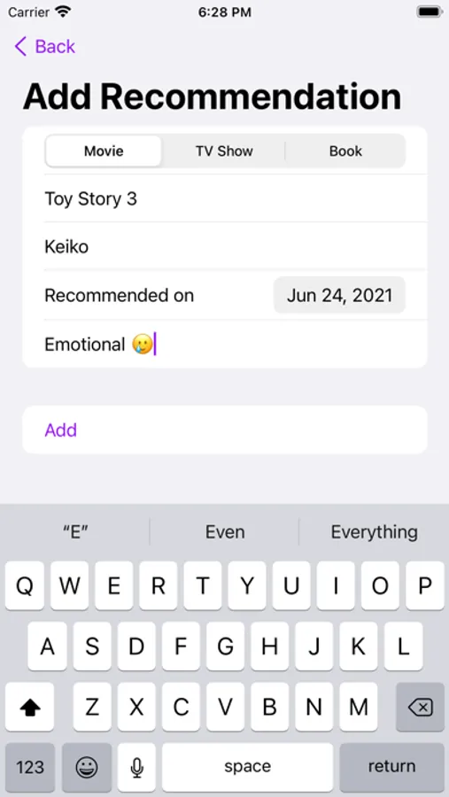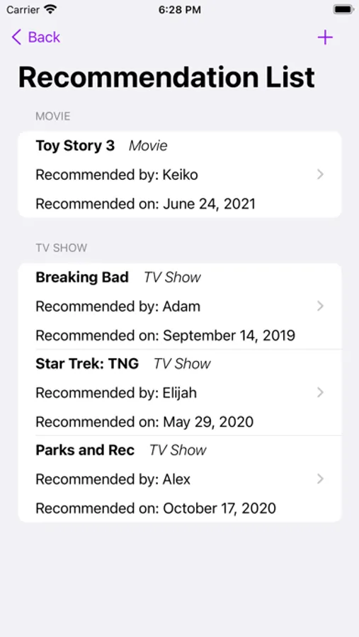 Do you forget about books or movies your friends tell you about? No longer! Track all of these interactions and even get a random recommendation when you're not sure what to read/watch next.