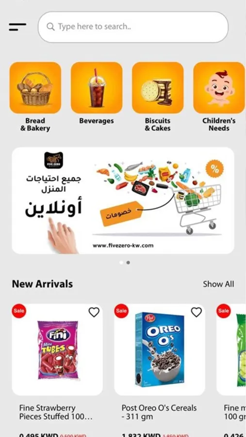 Five Zero Market App Offers big varieties of products From food and household supplies to frozen foods, baked goods, Healthy Products , children's needs, sweets and everything you need in one application. Offers up to 50% and more-KNET/Visa payment and COD, fast delivery, and many offers and features.