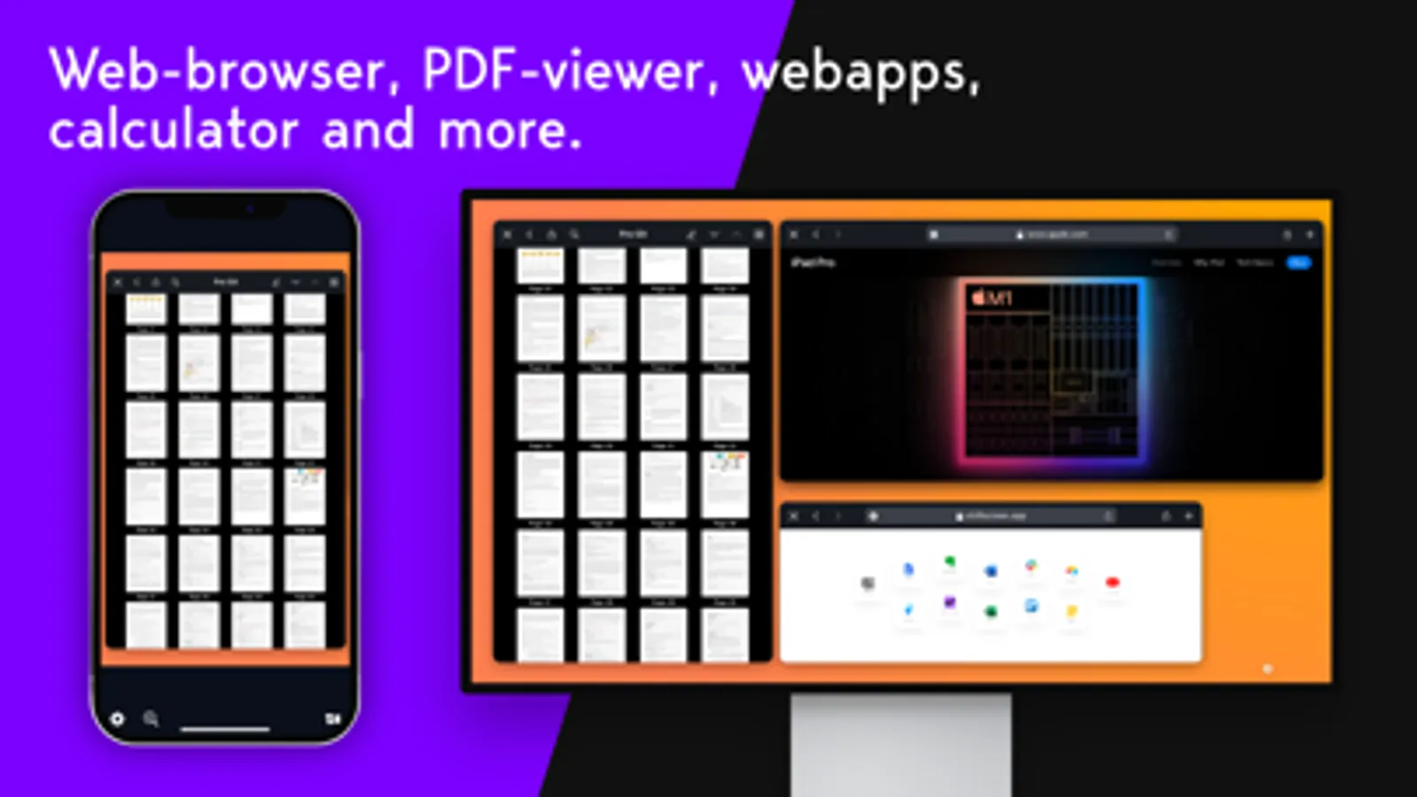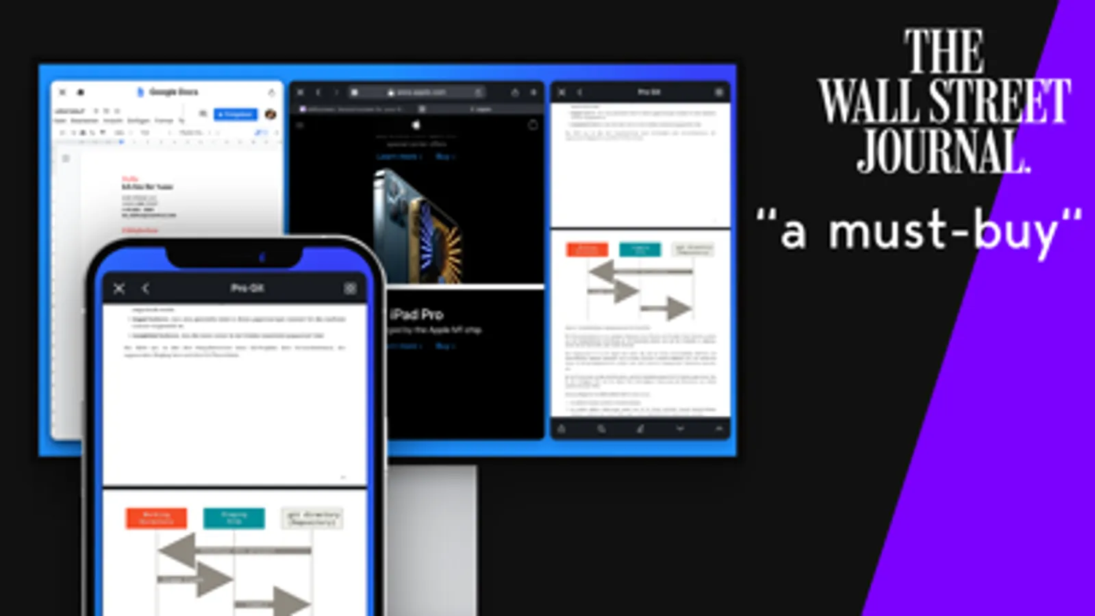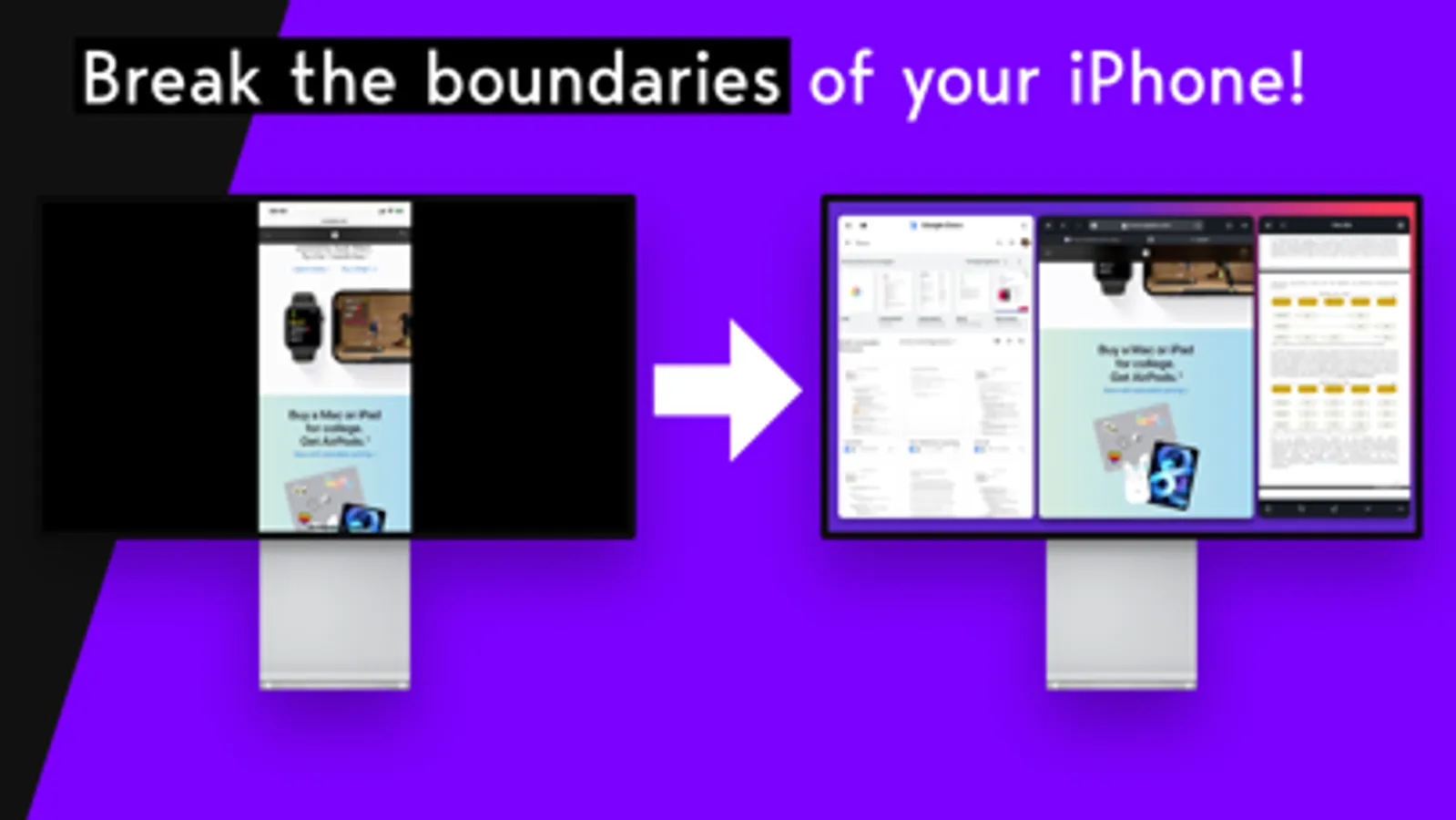 Boost your productivity by working with your monitor as a second screen while doing other things on your iPad in split-view. Or use your iPhone as a full computer and as a trackpad for the monitor.
