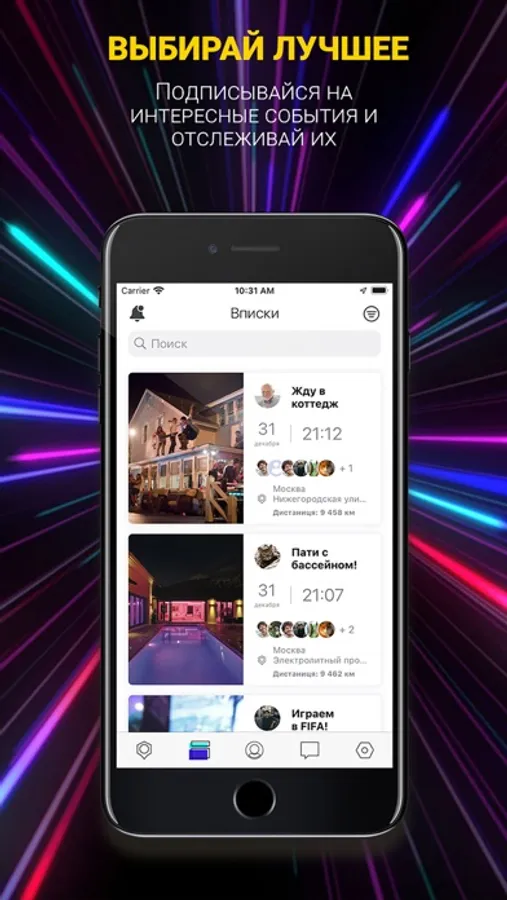 Create Vpiski in our application or Join Vpiski on the interactive map, chat in group chats, and don't waste any more time looking for a hangout! Just create your own account and collect guests!