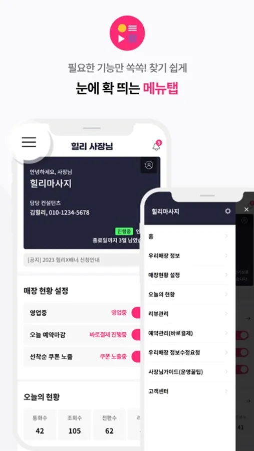 '힐리 사장님'은 힐리 제휴점 사장님들의 업체관리를 모바일로 간편하고 효율적으로 할 수 있는 앱입니다.